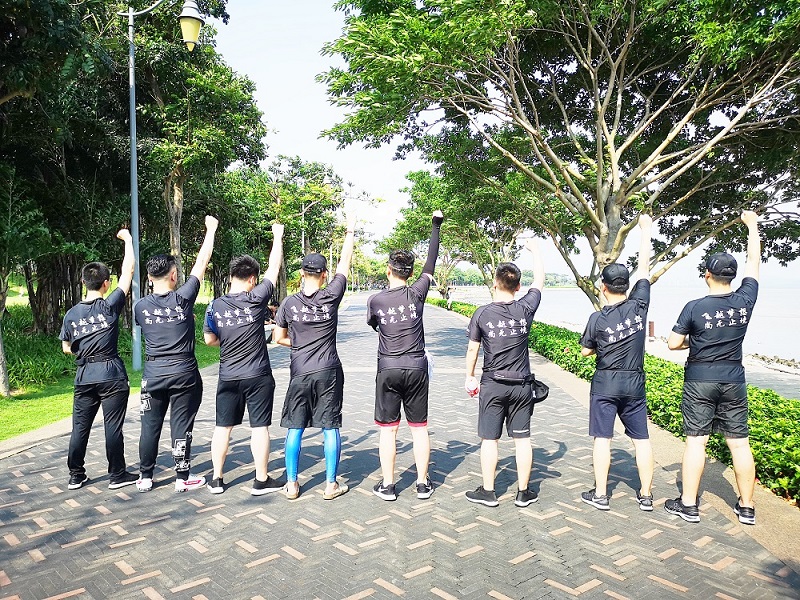 下午三時(shí)許,30余人從北灣鷺港出發(fā),浩浩蕩蕩奔赴歡樂海岸。他們身著統(tǒng)一的裝備,背后“飛越夢(mèng)想、尚無止境”八個(gè)大字在陽光下熠熠生輝,胸前的和平鴿正迎風(fēng)飛揚(yáng)。