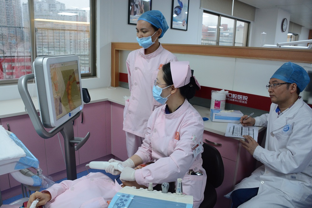 隱適美iTero口掃儀被稱為“網紅黑科技”,它改變了傳統取模時間長、不精準、異物感強的弊端,僅需幾分鐘即可完成全口數字化掃描,輕松精準采集模型數據,3分鐘立現矯正效果?;颊咧恍柰ㄟ^檢查掃描口腔,醫務人員將掃描后的牙齒圖片通過儀器設備上傳到云端,美國隱適美總部將根據患者牙齒情況,制定適合患者的3D矯正動畫方案,牙齒正畸角度更精準?;菘卺t院與國際醫療水平接軌,是惠州地區首家引進隱適美官方口內掃描儀 iTero專業機構,實現了正畸技術的三維可視化。據悉,隱適美官方口內掃描儀iTero全國僅50余臺,其中惠口醫院擁有2臺。
