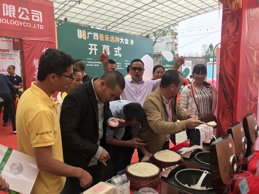 10月25日,廣西第十六屆“看禾選種”大會開幕式在廣西南寧隆重舉行,超600個優質水稻玉米品種在田間飄香,向近千名來自各地的專業觀眾亮出完美身姿。開幕式會場,匯集了品牌企業展覽、重點推介品種授牌、優質稻米品嘗、優良品種田間展示等多項精彩紛呈的活動。集團成員企業廣西兆和種業有限公司董事長何懿帶領營銷團隊20余人精心組織推介公司各品種,獲得主辦單位高度贊揚。