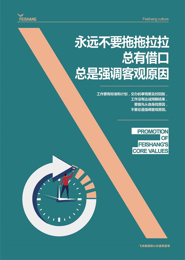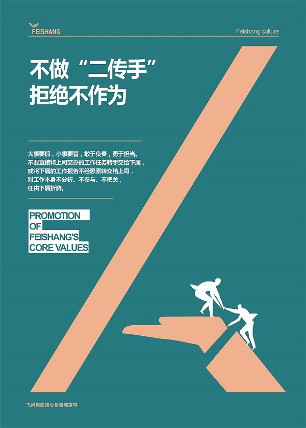 希望全體員工愛崗敬業、大愛無私、積極陽光,努力踐行飛尚集團核心價值觀,堅決抵制不良行為,唾棄不良風氣,共同營造風清氣正的企業氛圍。