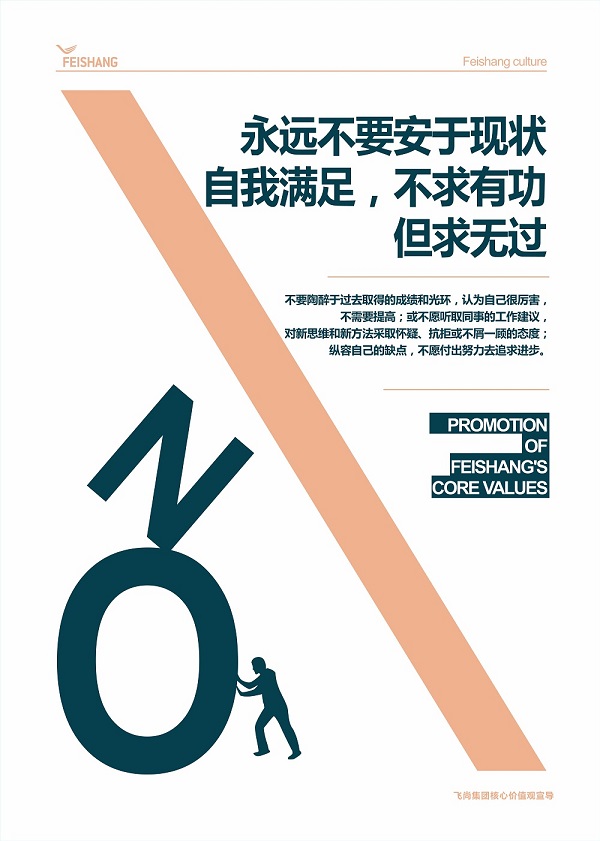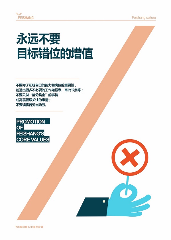 上期編發的飛尚集團核心價值觀行為指引禁行12條關于“誠信”和“責任”,本期內容關于“超越”和“增值、共贏”。