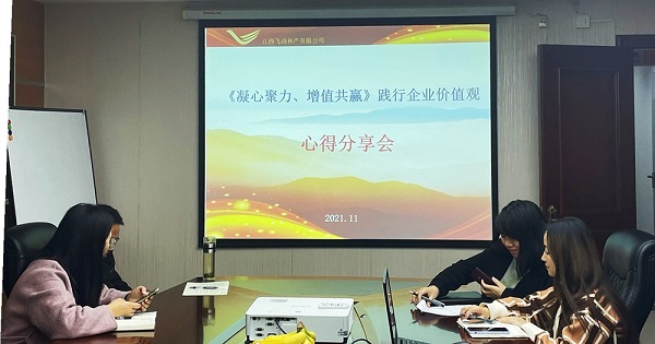 為提高組織凝聚力,加強(qiáng)企業(yè)內(nèi)部溝通,江西飛尚林產(chǎn)有限公司于10月24—25日組織員工開(kāi)展以“凝心聚力、增值共贏”為主題的拓展培訓(xùn)活動(dòng)。在此基礎(chǔ)上,11月12日,結(jié)合飛尚集團(tuán)核心價(jià)值觀行為指引倡行20條、禁行20條,公司董事長(zhǎng)兼總經(jīng)理謝有紅在全公司范圍內(nèi)組織開(kāi)展踐行企業(yè)價(jià)值觀心得分享。
