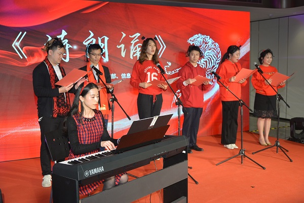 隨后,由員工自編、自導、自演的各類文藝節目輪番登場。舞蹈《向快樂出發》、朗誦、舞蹈《nobody》、小品《時間都去哪了》、歌曲串燒《推開時間的門》五個節目與抽獎活動輪番進行,現場歡歌笑語,洋溢著濃郁的節日氣氛。