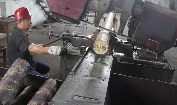 在鋸床鋸黃銅棒