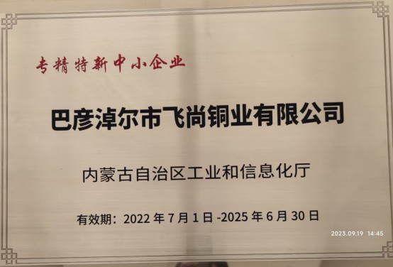 飛尚銅業于2016年、2019年、2022年多次被自治區授予“高新技術企業”;2021年與國內高校合作,獲批成立“博士科研工作站”,同年被市科技局授予市級“企業技術中心”;2022年獲得自治區工信廳授予“綠色工廠”“專精特新企業”;2023年授予省級“企業技術中心”。另外,近三年多來,累計獲得政府技術獎勵資金200多萬元。各項技術進步與創新項目為企業降本或增收發揮了重要作用,每年為企業創造效益至少3000萬元以上。